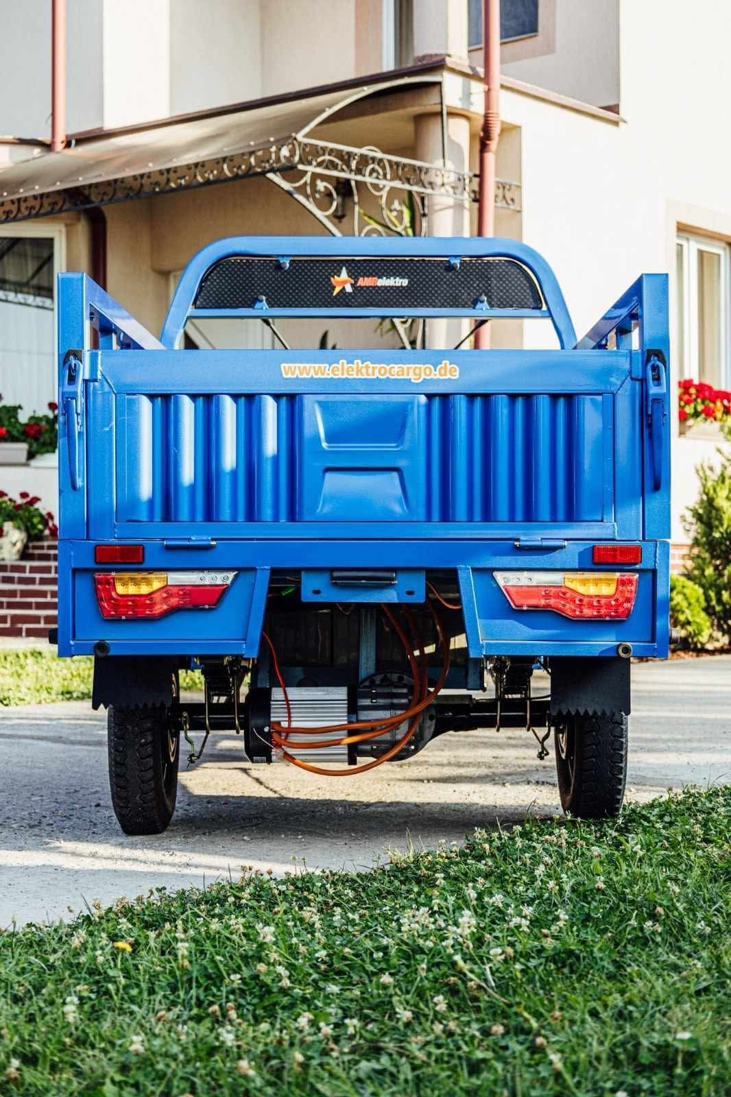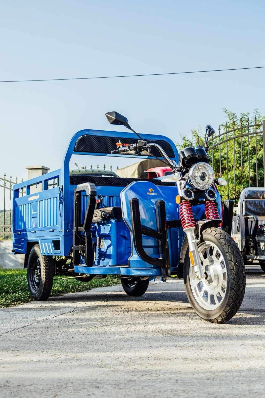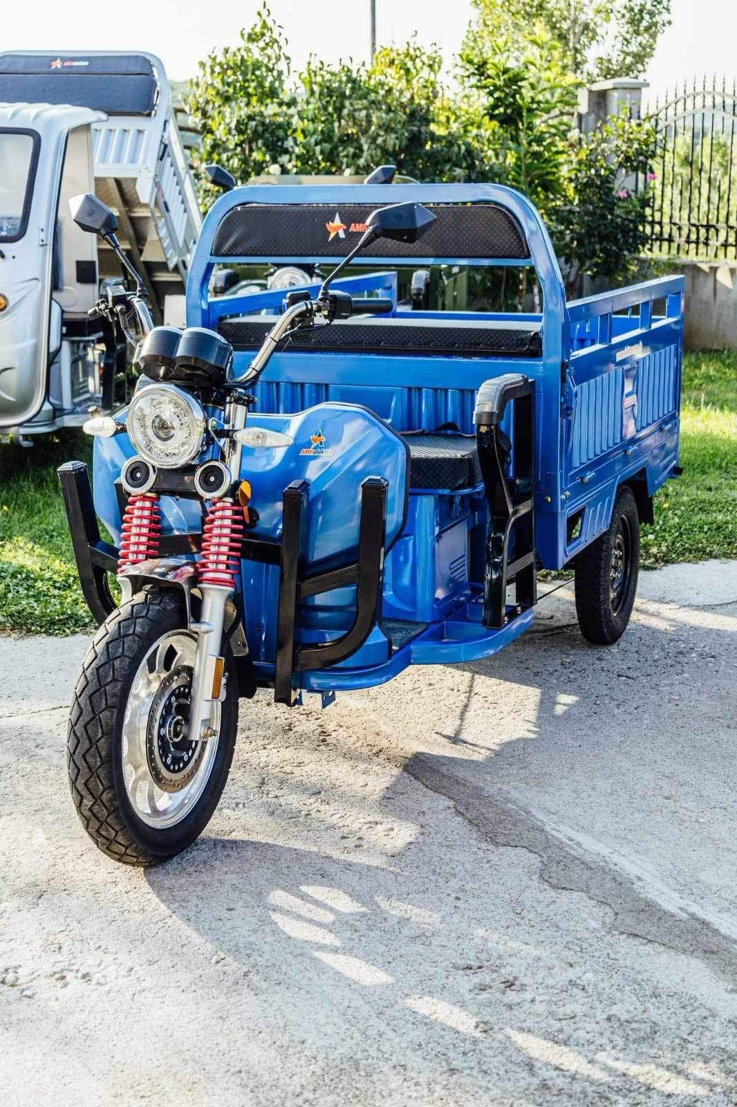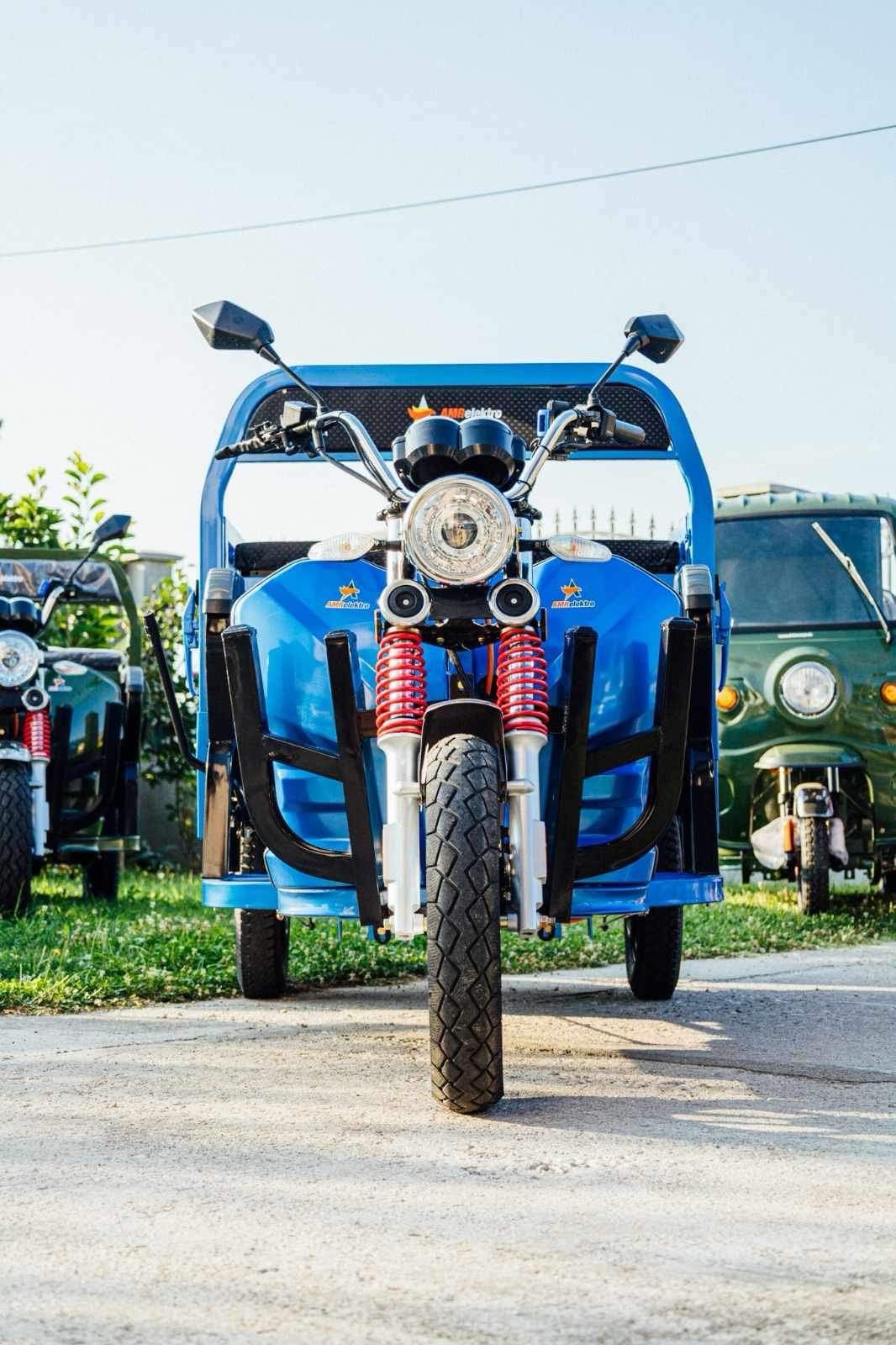 Liderul puterii: Triciclul electric AMR 400 cu motor puternic de 3900W. Un vehicul electric cargo de top, esențial pentru transport industrial și sarcini foarte grele. Investește în forța și autonomia acestui triciclu pe 3 roți.