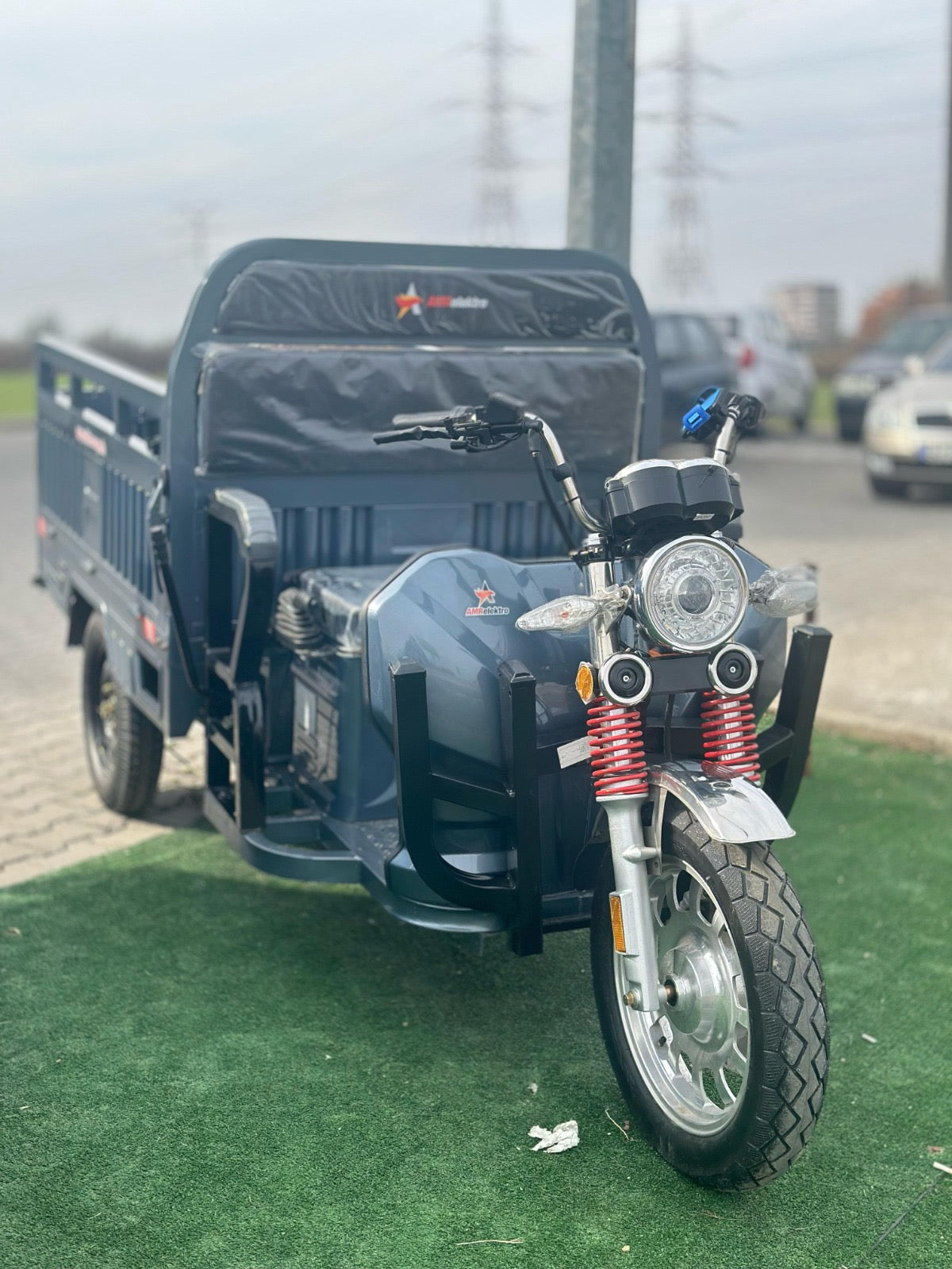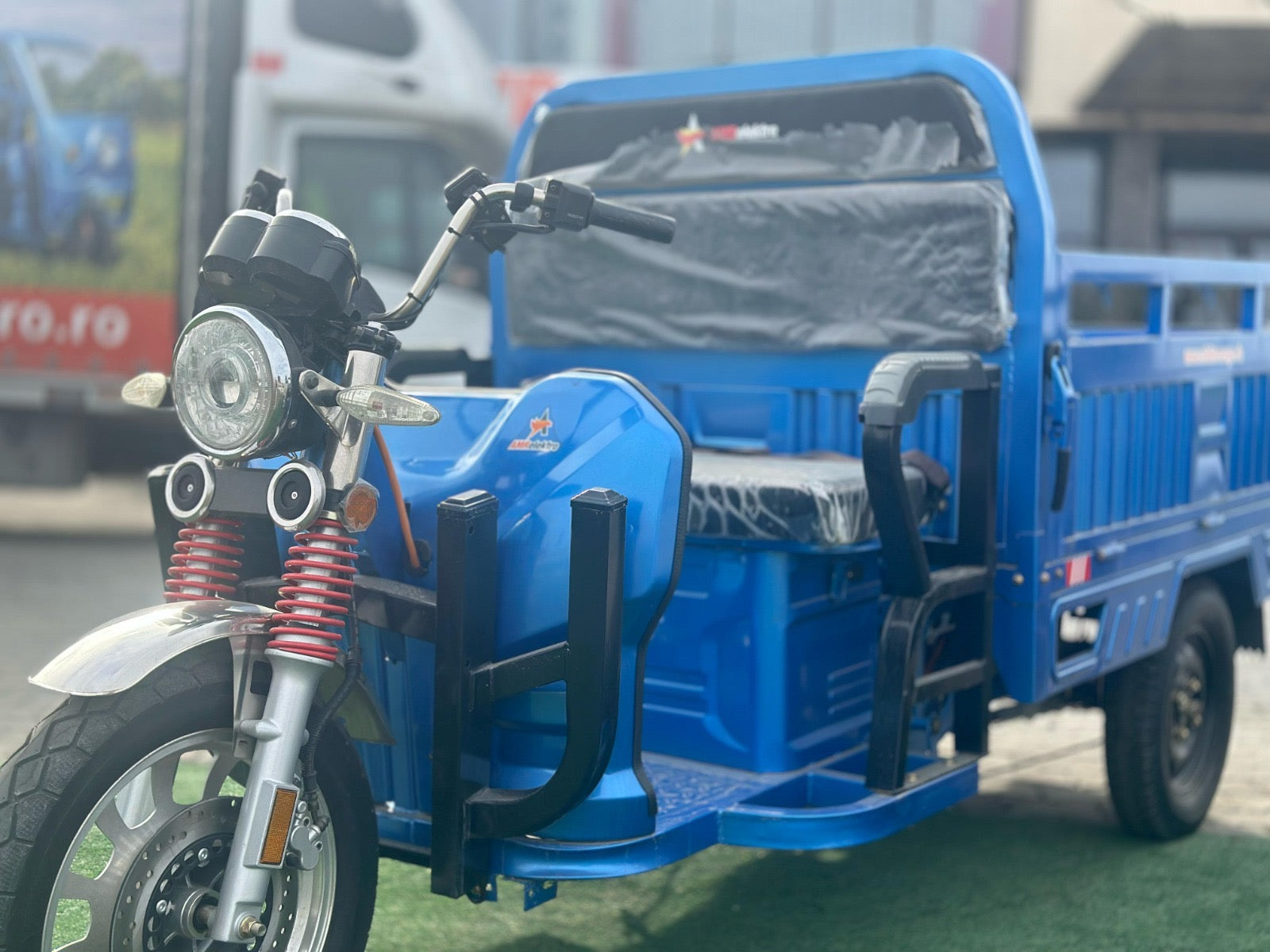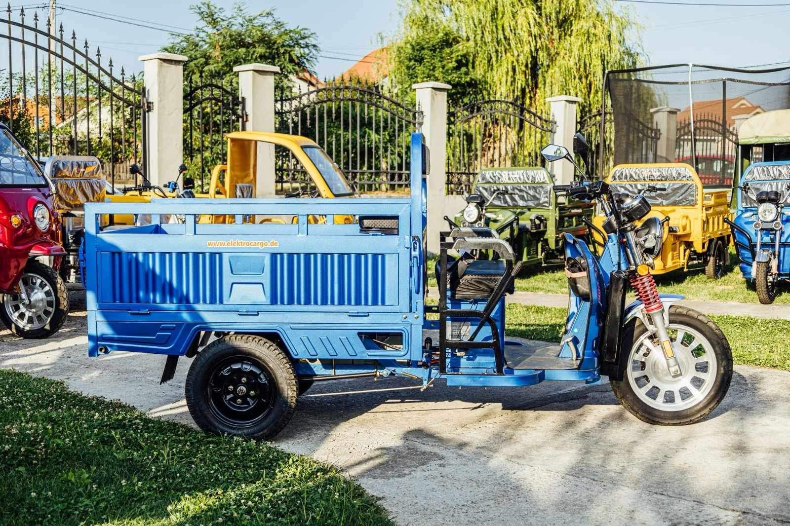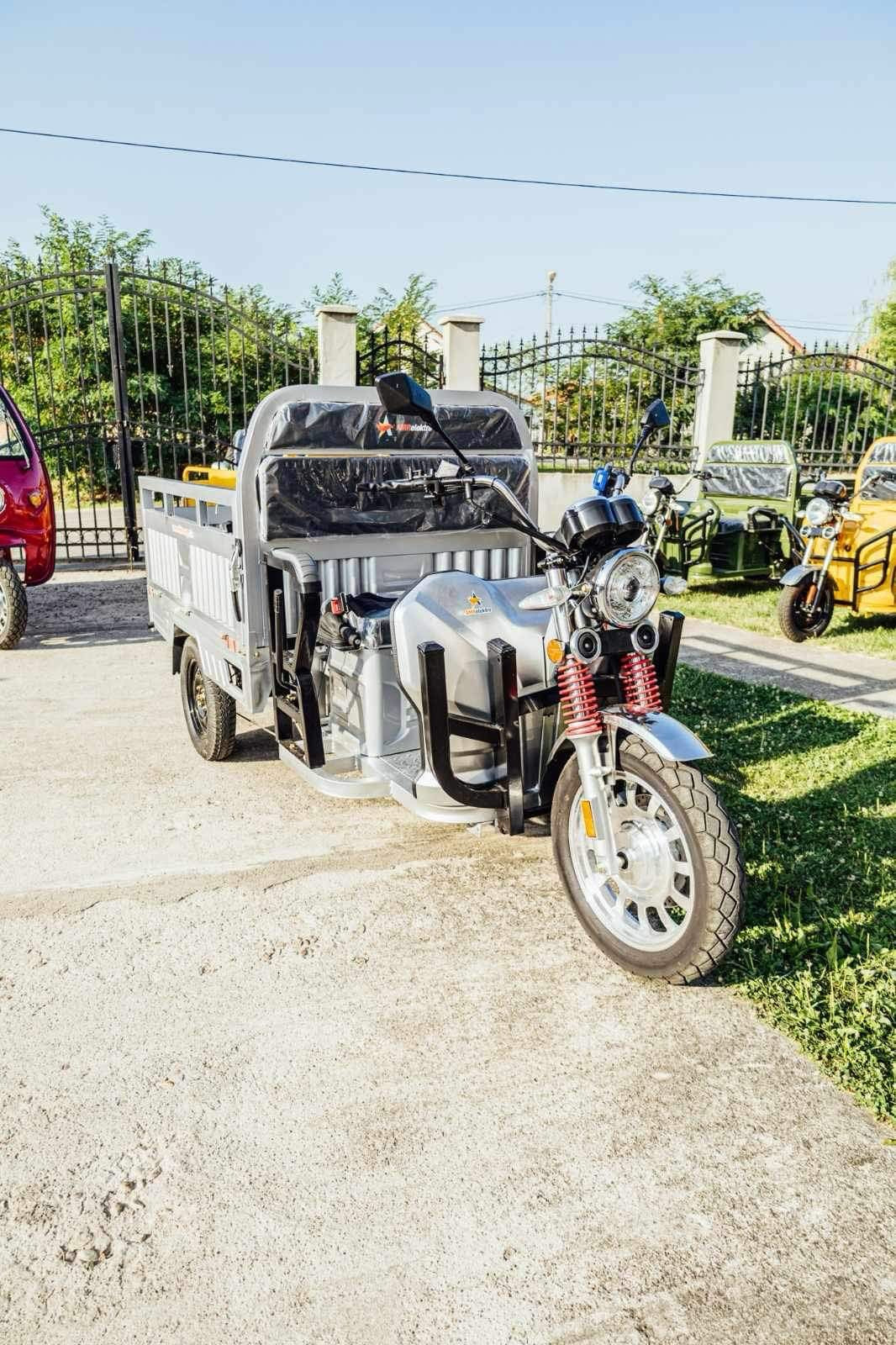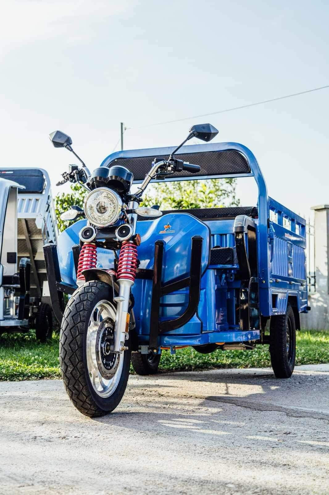 Liderul puterii: Triciclul electric AMR 400 cu motor puternic de 3900W. Un vehicul electric cargo de top, esențial pentru transport industrial și sarcini foarte grele. Investește în forța și autonomia acestui triciclu pe 3 roți.