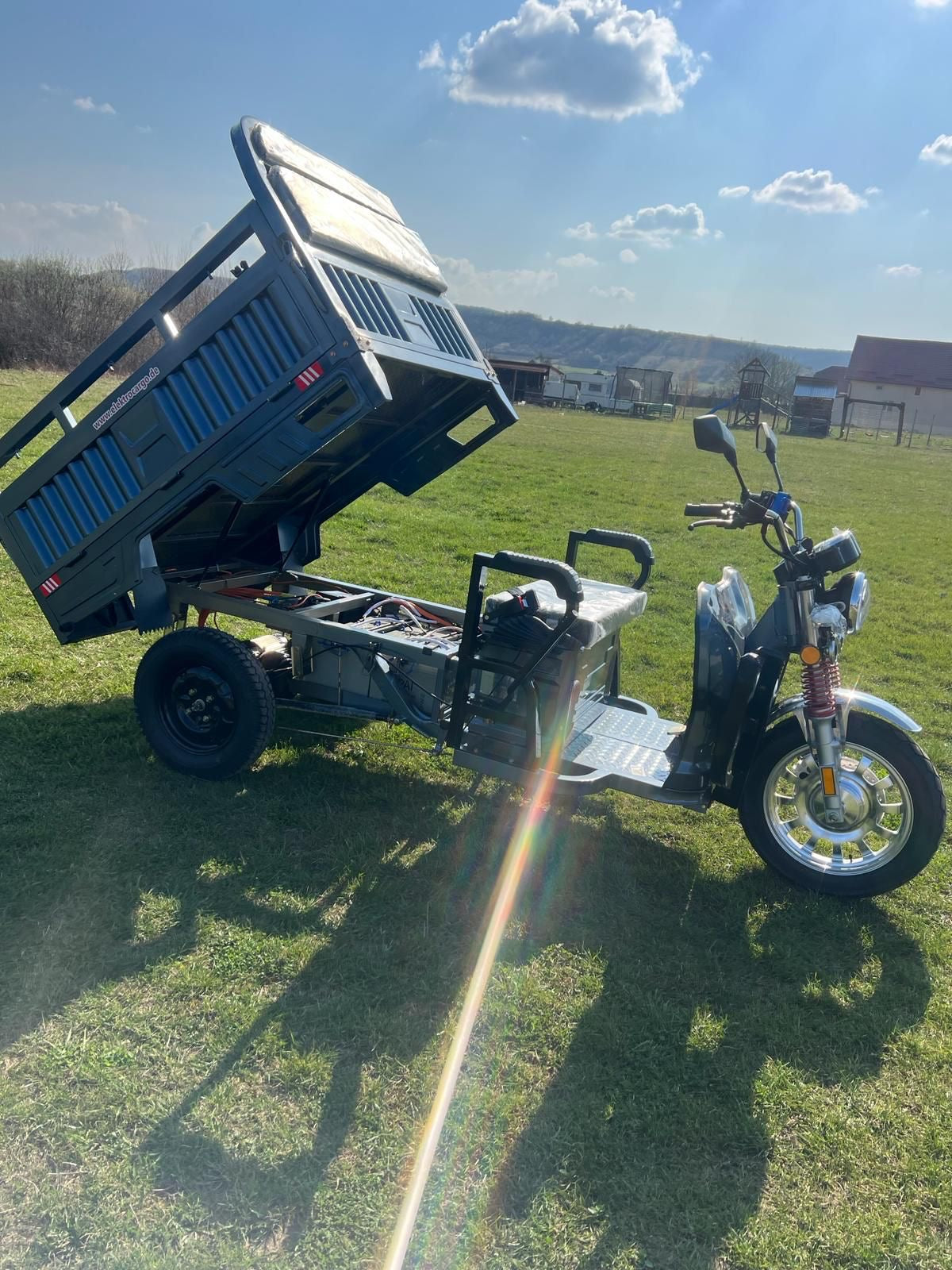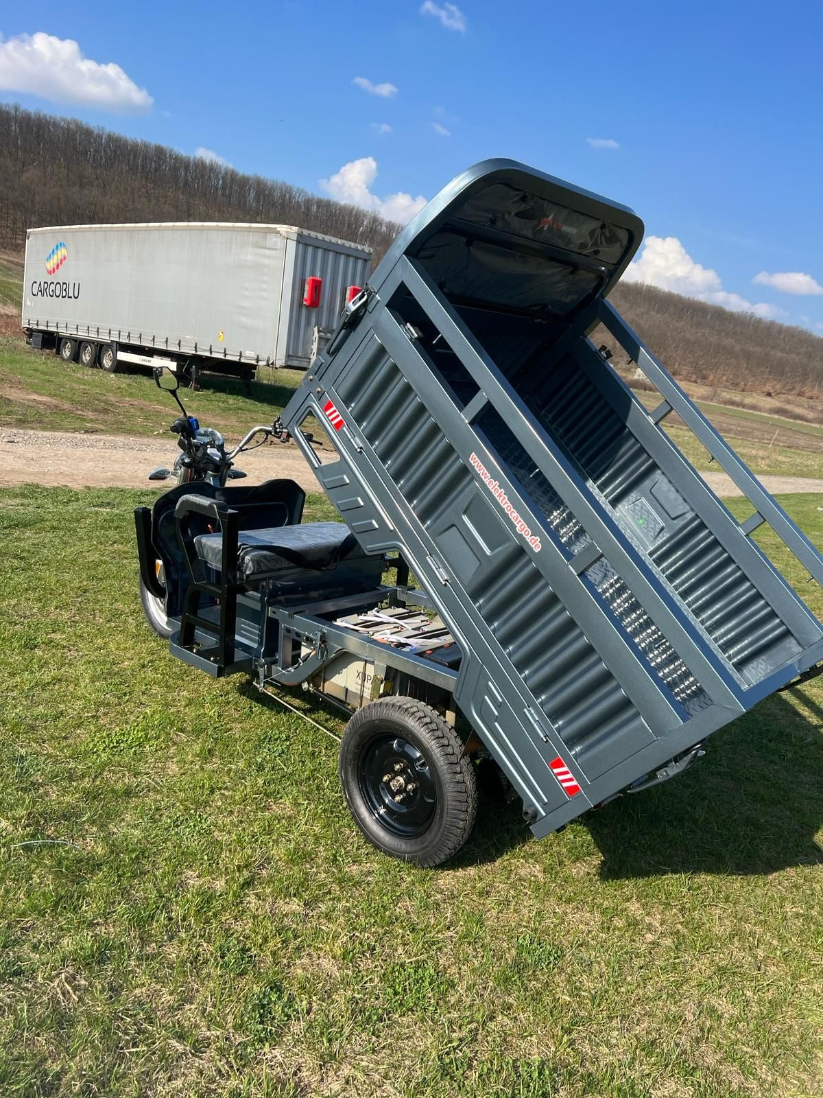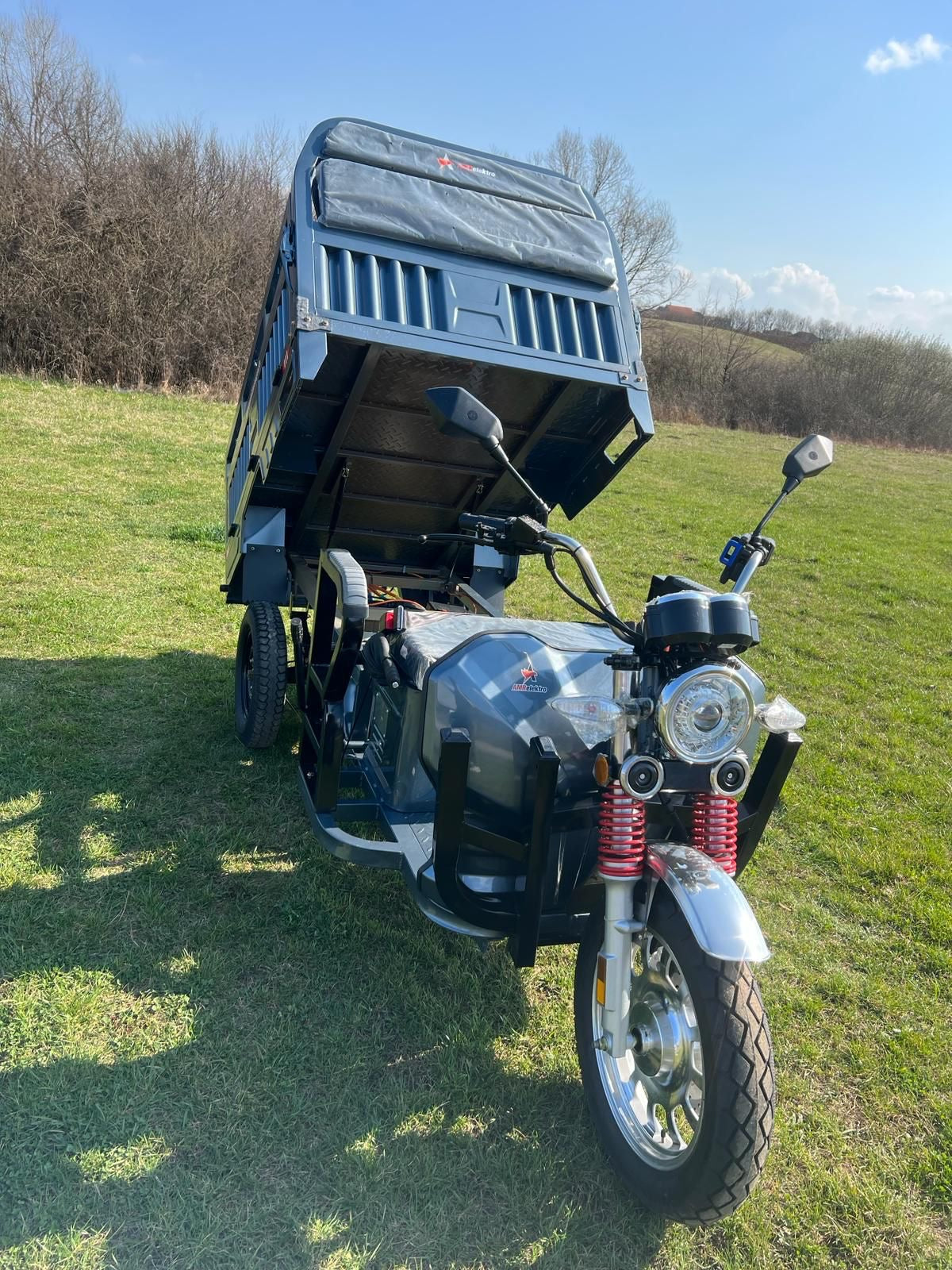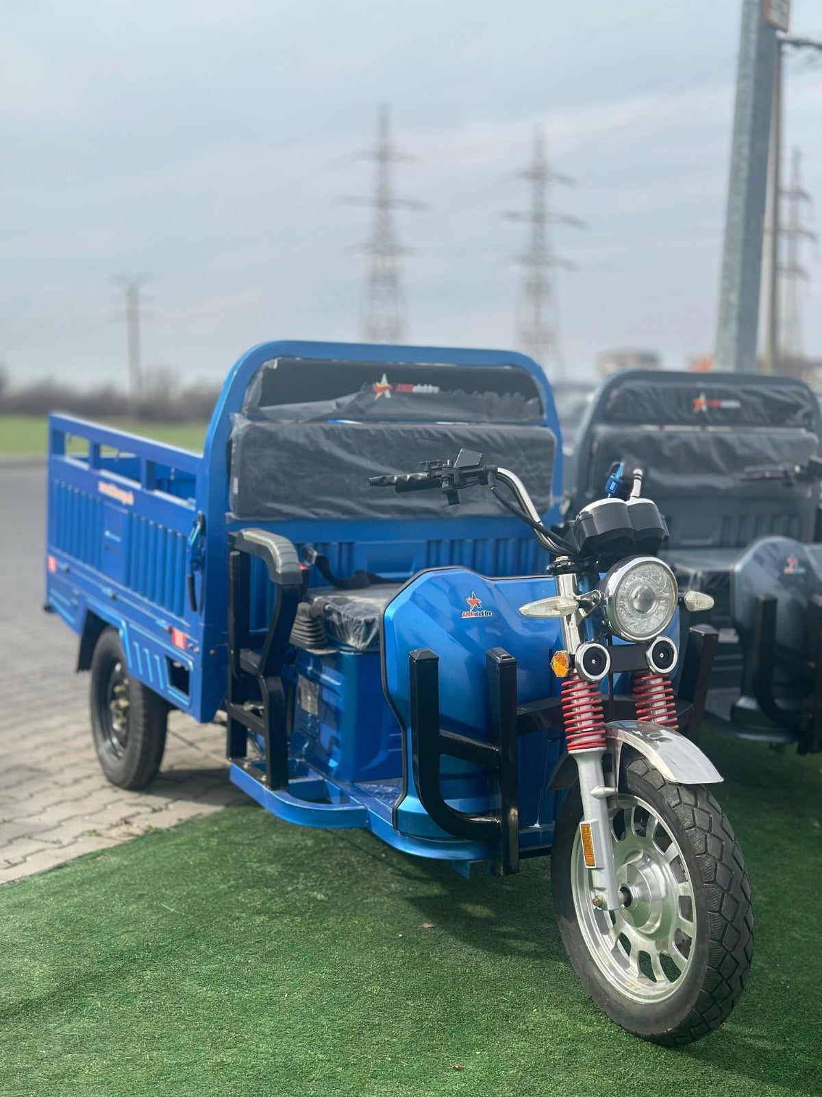 Liderul puterii: Triciclul electric AMR 400 cu motor puternic de 3900W. Un vehicul electric cargo de top, esențial pentru transport industrial și sarcini foarte grele. Investește în forța și autonomia acestui triciclu pe 3 roți.