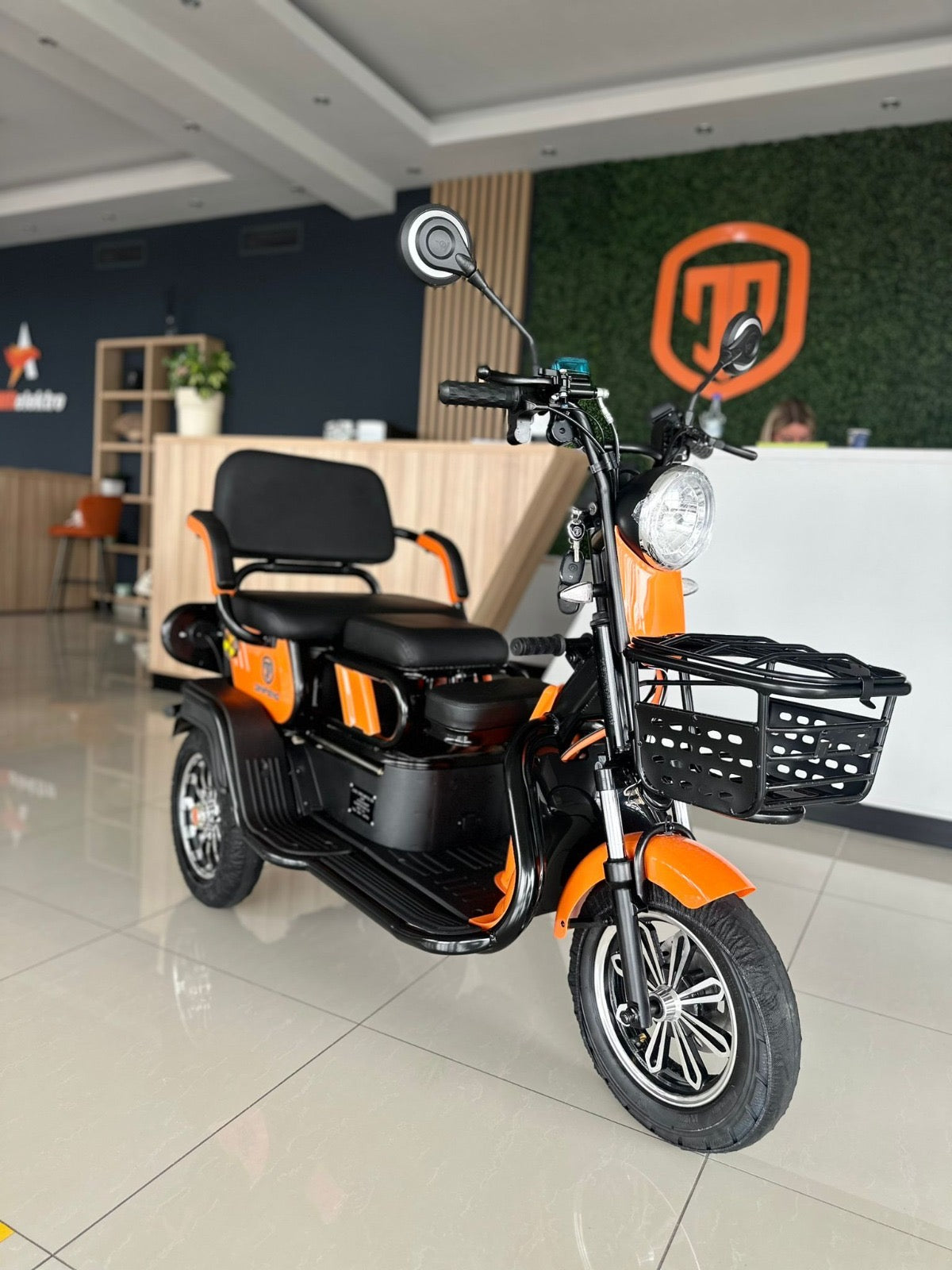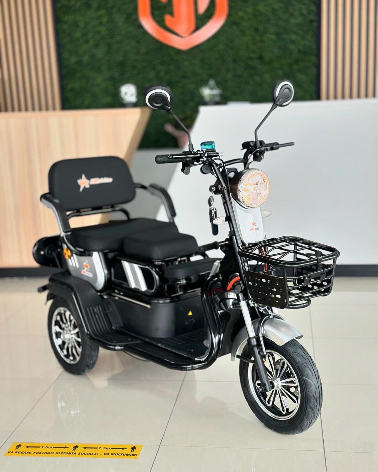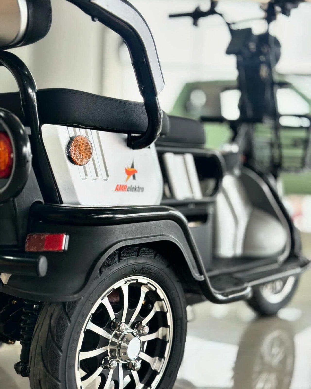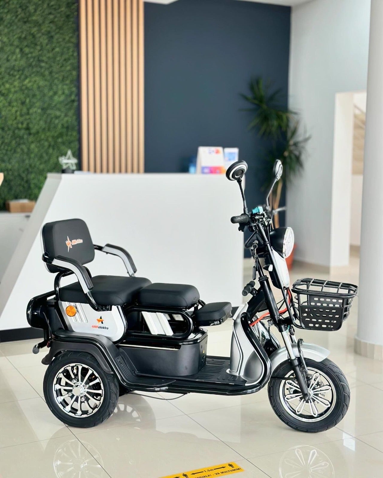 Triciclu electric AMR 100 compact, ideal pentru mobilitate personală și transport ușor. Un vehicul agil și sigur, perfect pentru deplasări urbane economice, oferind stabilitate excelentă și confort în utilizarea zilnică.
